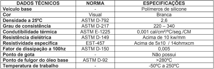 Desenvolvida para a indústria eletroeletrônica, a TILUB THERMAL PASTE possui alta condutividade térmica, alto grau de pureza e boa estabilidade de consistência em ampla faixa de temperatura. Com baixa volatilidade e “não secativa”, atua como condutor de calor entre a superfície de contato e a chapa de resfriamento, evitando aquecimento demasiado em relação ao meio ambiente, transferindo para o exterior o excesso de calor, provocando equilíbrio térmico entre as superfícies.